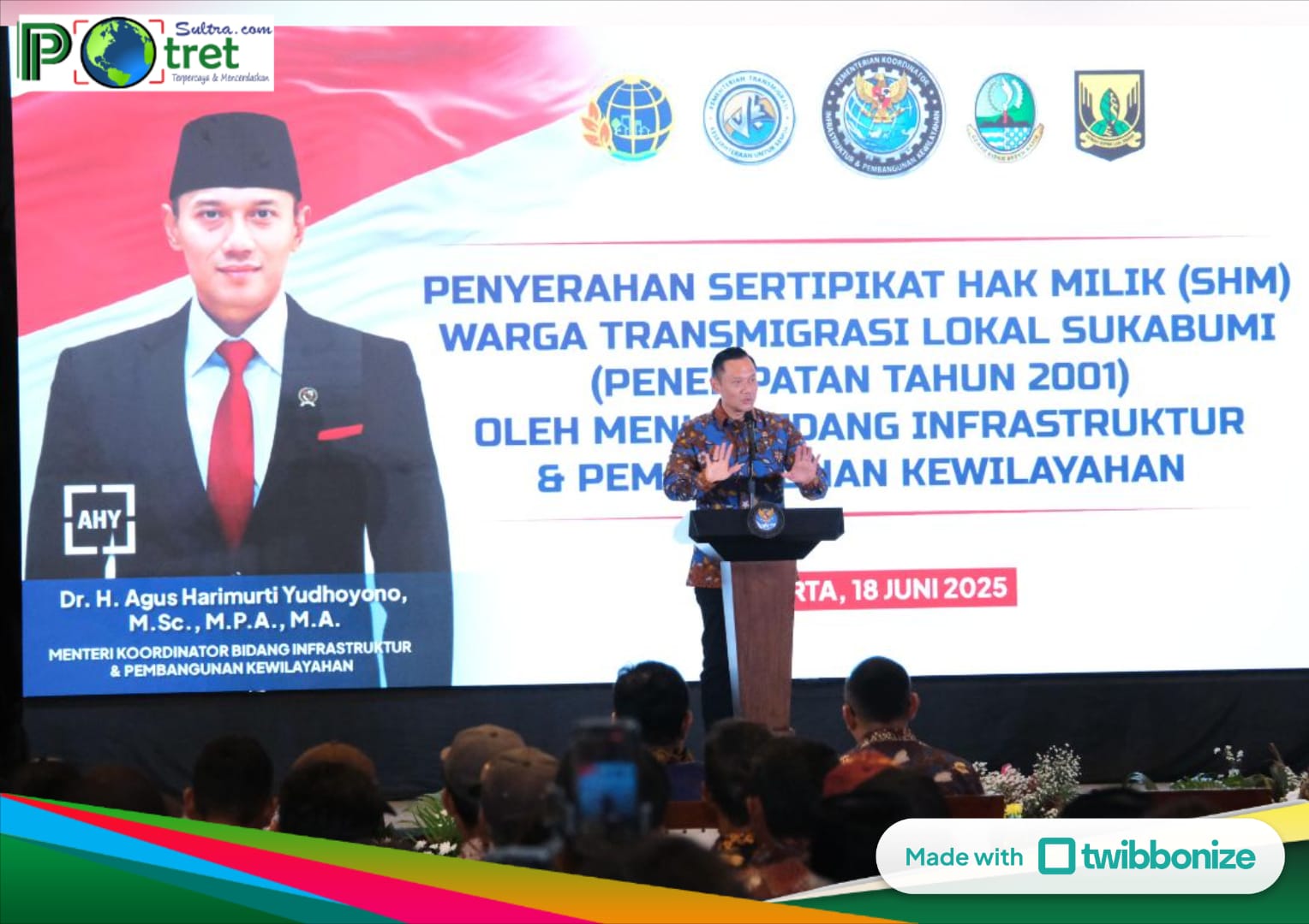 “Saya punya keyakinan bahwa Kementerian ATR/BPN memiliki peran yang sangat penting. Semua pembangunan, baik di Jawa maupun luar Jawa, selalu berawal dari satu hal, lahan. Kalau status lahan tidak jelas, tidak akan ada yang berani membangun. Bahkan investasi pun tidak akan datang,” ujar Menko AHY dalam acara penyerahan 1.120 Sertifikat Hak Milik (SHM) kepada transmigran asal Kabupaten Sukabumi, yang diselenggarakan di Kantor Kementerian Transmigrasi, Jakarta, Rabu (18/06/2025).