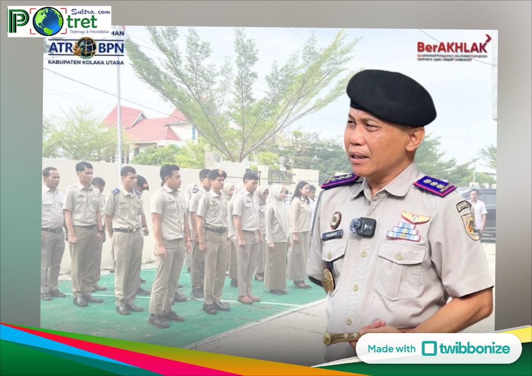 Kepala Kantor Pertanahan Kabupaten Kolaka Utara, Kuntarto bertindak sebagai pembina apel dan dipimpin langsung oleh Muh. Aswar, S.H., selaku Analis Hukum Pertanahan.