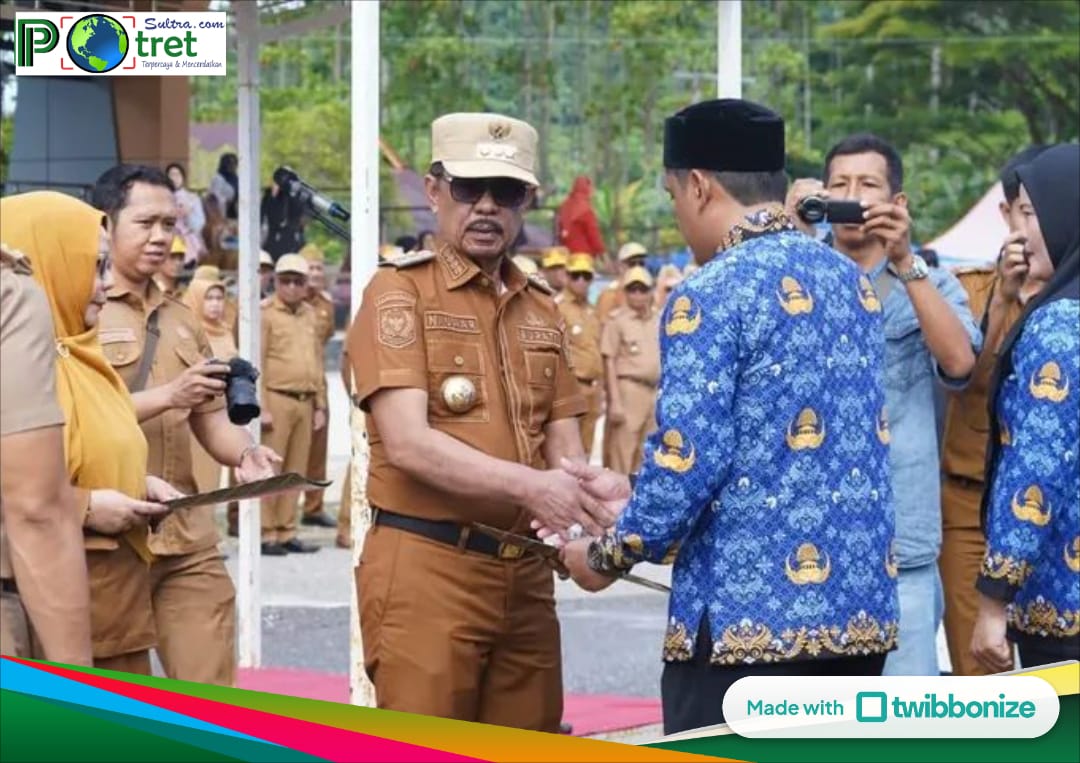 Kegiatan tersebut dirangkaikan dengan apel gabungan serta penyerahan Surat Keputusan (SK) PPPK Paruh Waktu (PW) Tahun 2026. Apel dipimpin langsung oleh Bupati Kolaka Utara, Drs. H. Nur Rahman Umar, MH, yang bertindak sebagai pembina upacara.