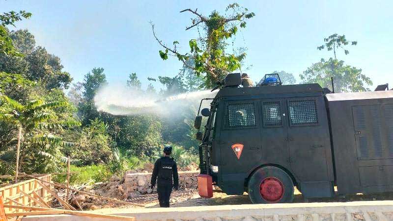 Kepolisian lakukan pemadaman kebakaran lahan di Kecamatan Baruga. Foto: Istimewa.