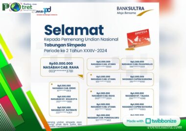 KENDARI – 18 nasabah dari PT Bank Pembangunan Daerah (BPD) Sulawesi Tenggara (Sultra) meraih keberuntungan pada undian…