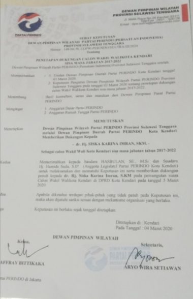 KENDARI-Dewan Pimpinan Wilayah (DPW) Partai Persatuan Indonesia Provinsi Sulawesi Tenggara (Sultra) melalui Dewan Pimpinan Daerah (DPD) Kota Kendari mengeluarkan…