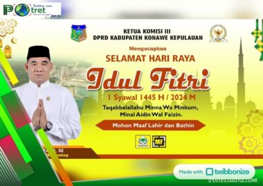 KONAWE KEPULAUAN – Ketua Komisi III DPRD Kabupaten Konawe Kepulauan (Konkep) Muhammad Farid, SE mengucapkan selamat Hari Raya Idul…