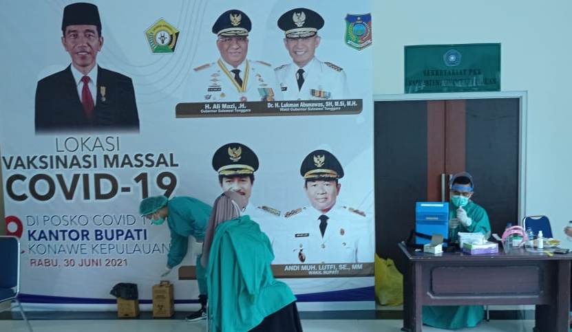 Saat ini Pemerintah Pusat memprogramkan vaksinasi massal. Menindaklanjuti arahan tersebut, Pemda Konkep juga menggelar vaksinasi massal yang dilakukan di Kantor Bupati Konawe Kepulauan, Rabu (30/6/2021).