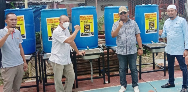 KENDARI– Ketua DPRD Kendari Subhan ST,mengambil langkah cepat pencegahan dan penyebaran virus Corona atau Covi-19,dengan menyediakan 5 tempat tong pembersih cuci tangan untuk dipasang di pintu masuk di Pasaran.Adapun ke 5 pasar yang mendapatkan bantuan tong air yakni Pasar Sentral Kendari,Pasar Baru,Pasar RB depan Rabam,Pasar Basah Mandonga, dan Pasar Panjang Kendari.