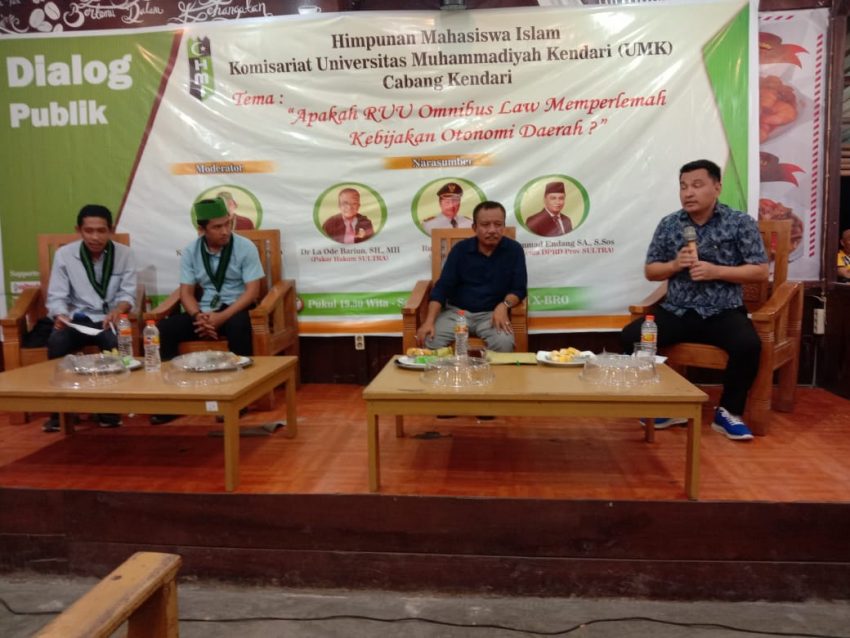 Di tempat yang sama, Wakil ketua DPRD Provinsi Sulawesi Tenggara, Muhammad Endang yang juga turut hadir sebagai pembicara dialog menegaskan, kehadiran Omnibus Law dinilai dapat melemahkan posisi Pemerintah Daerah (Pemda).