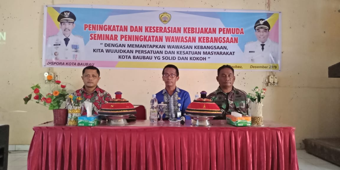 BAUBAU – Pemerintah Dinas Pemuda dan Olahraga (Dispora) Kota Baubau, Provinsi Sulawesi Tenggara (Sultra) menggelar Seminar Peningkatan Wawasan Kebangsaan, Kamis (05/12/2019).
