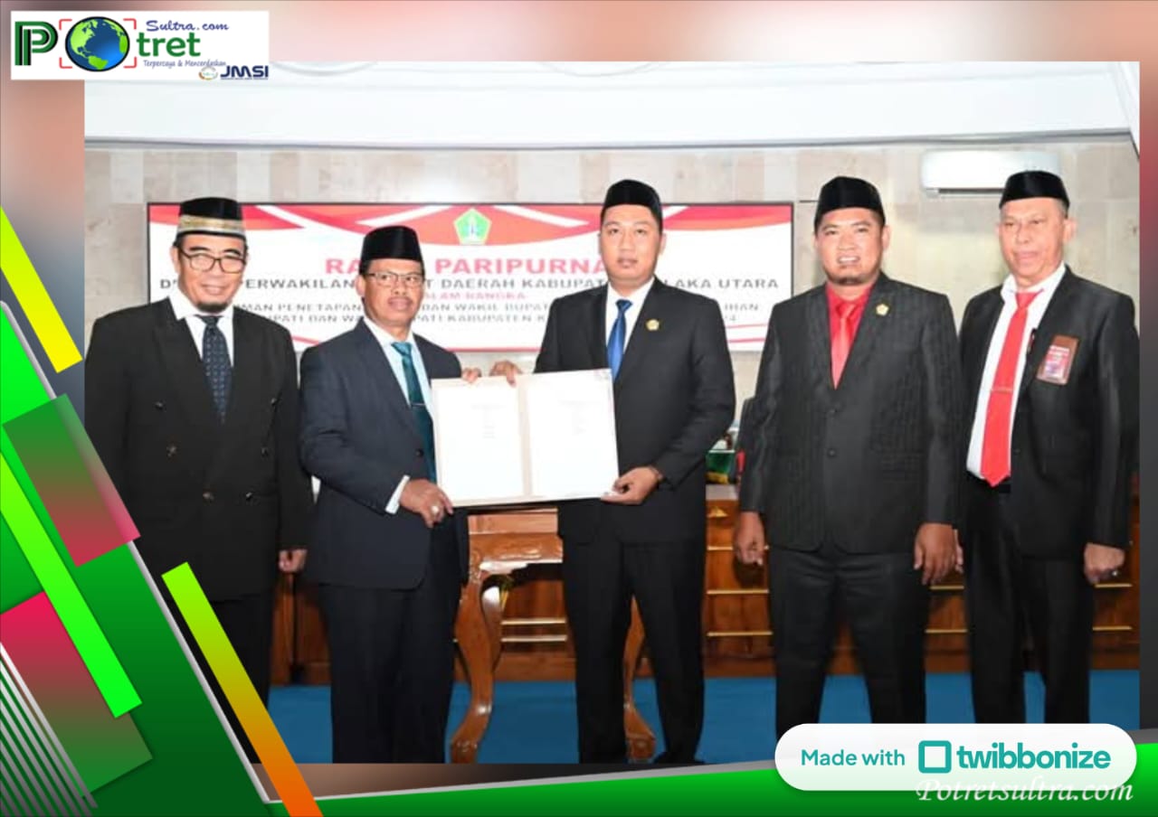 Ketua DPRD Kolaka Utara, Fitrah Yudi memimpin langsung rapat paripurna pengumuman penetapan pasangan H. Nurrahman Umar, SH., MH., sebagai Bupati dan H. Jumarding, SE., sebagai Wakil Bupati Kolaka Utara terpilih periode 2025-2030.