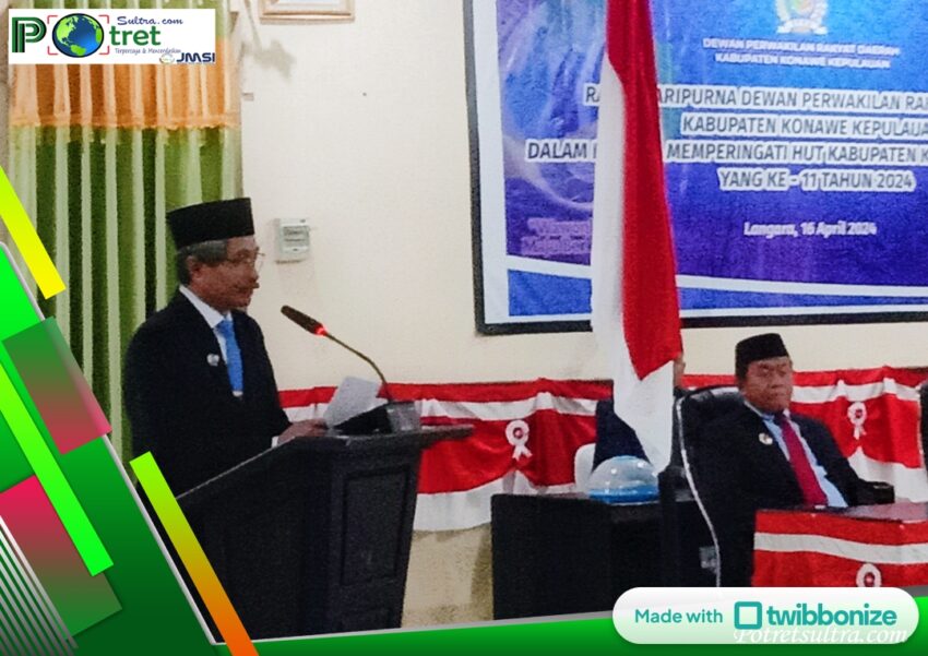 “HUT Konkep tahun ini, bertepatan dengan tahun terkahir kepemimpinan kami selama dua periode sebagai Bupati dan wakil Bupati Konkep, sekaligus tahun keempat pelaksanaan RPJMD tahun 2021-2026 dengan visi Menuju Wawonii Bangkit Berbasis Lingkaran Hati Emas Tahun 2026,” ucap Bupati Konkep dalam memberikan sambutan pada acara rapat Paripurna DPRD Konkep.