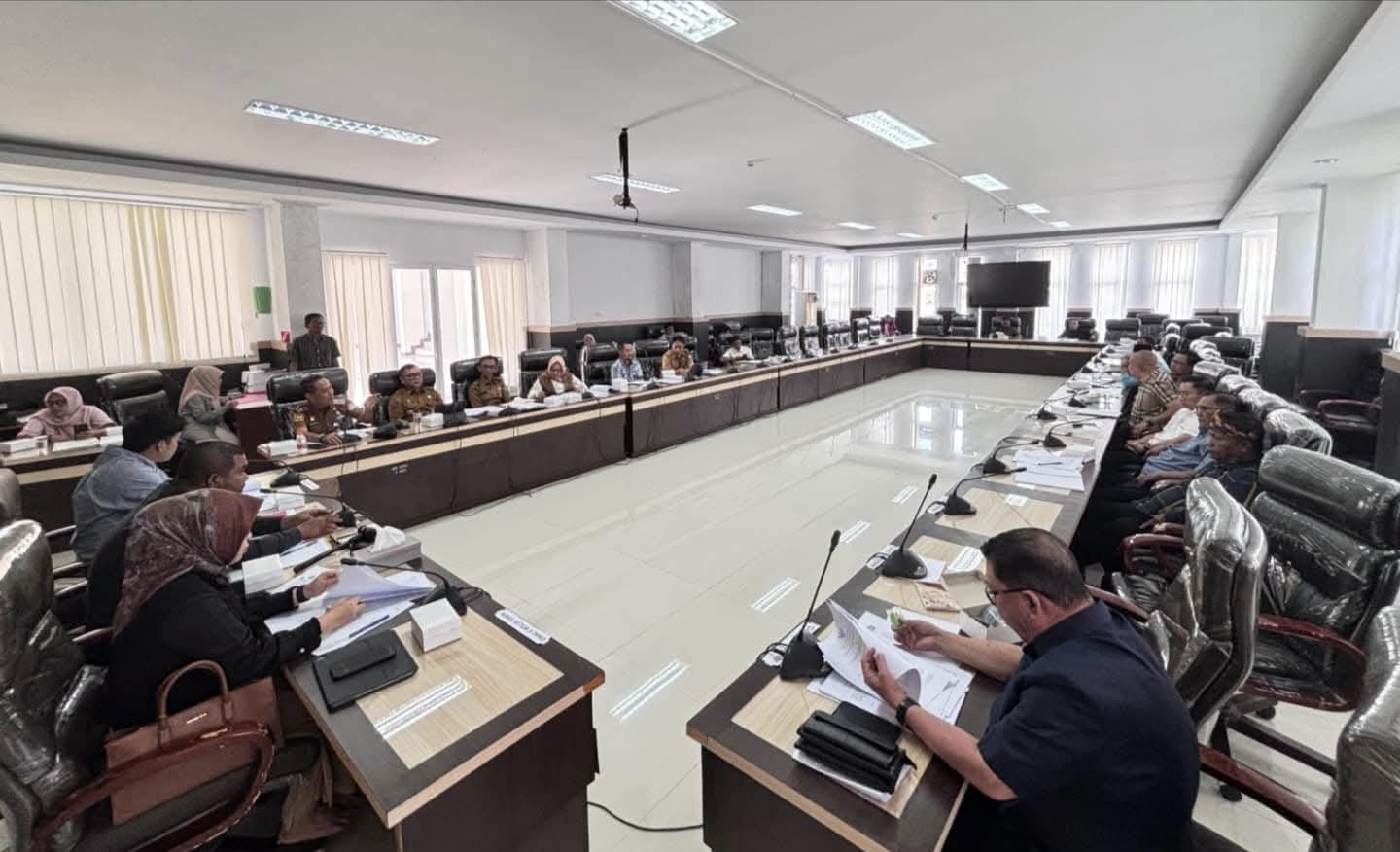 Suasana Rapat Penyempurnaan Ranperda Kota Kendari tentang Pertanggungjawaban Pelaksanaan APBD Tahun Anggaran 2024 dihadiri anggota DPRD dan Unsur pejabat Pemkot Kendari