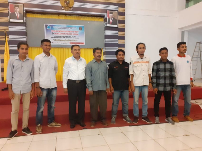 BAUBAU – Komisi Pemilihan Umum Mahasiswa (KPUM) Universitas Dayanu Ikhsanuddin Baubau menggelar tahapan pemilihan, yakni pengundian nomor urut dan sekaligus deklarasi Pemilu damai, Selasa (07/01/2020).