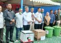 Keterangan Gambar : Ketua Kadin Sultra, Anton Timbang (kanan) saat menyerahkan SK pengurus ke Kadin Bombana. Foto: Istimewa