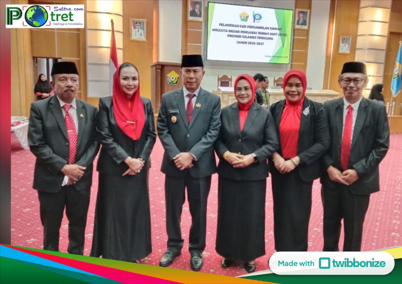 KENDARI – Gubernur Provinsi Sulawesi Tenggara (Sultra), Andi Sumangerukka resmi melantik lima anggota Badan Pengawas Rumah Sakit (BPRS) masa bakti 2025-2029 di ruang Pola Kantor Gubernur, Rabu (4/9/2025).