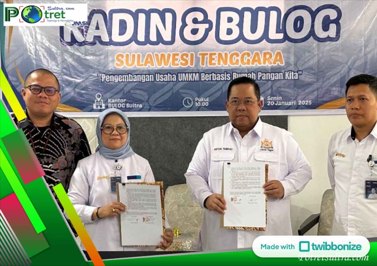 MoU tersebut diteken langsung oleh Ketua Kadin Sulawesi Tenggara, Anton Timbang bersama Kepala Bulog Sultra, Sitti Mardati Saing. Kerjasama tersebut untuk mengembangkan Usaha Mikro, Kecil, dan Menengah (UMKM) berbasis Rumah Pangan Kita (RPK) di Kantor Bulog Sultra.