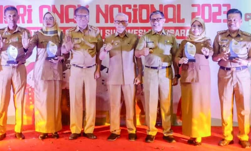 KENDARI – Wakil Gubernur (Wagub) Sulawesi Tenggara (Sultra), menyerahkan piagam penghargaan Kota Layak Anak (KLA) kategori Nindya kepada Pemerintah Kota (Pemkot) Kendari, pada peringatan Hari Anak Nasional Tingkat Provinsi Sulawesi Tenggara. Acara itu, berlangsung di Gedung Olahraga (GOR) Kota Kendari, Selasa (22/8/2023).