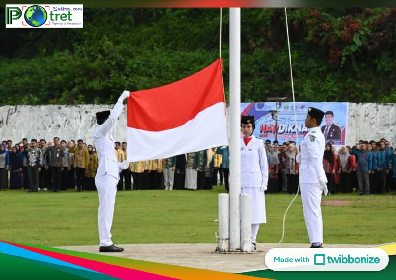 Suasana Upacara Penaikan Bendera Merah Putih Memperingati Hari Pendidikan Nasional di Kolaka Utara