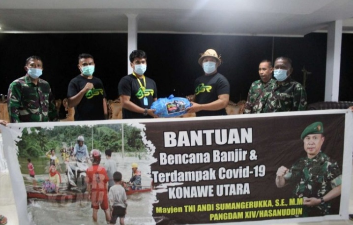 Bantuan ini langsung dari Bapak Pangdam Mayjen TNI Andi Sumangerukka untuk masyarakat korban banjir dan juga masyarakat terdampak Covid19,” ujar Andi Andriansyah kepada wartawan.