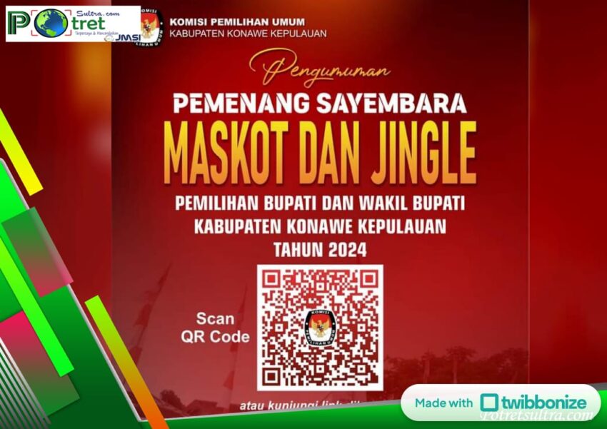 Dalam pengumuman tersebut tertulis, berdasarkan Berita Acara (BA) Nomor 125/PP.06.2-BA/7412/2024 tentang Penetapan Pemenang Sayembara Maskot dan Jingle Pemilihan Bupati dan Wakil Bupati Konawe Kepulauan Tahun 2024 serta keputusan KPU Konkep Nomor 318 Tahun 2024, dengan ini diumumkan pemenang sayembara maskot dan jingle Pilbup Konkep tahun 2024.