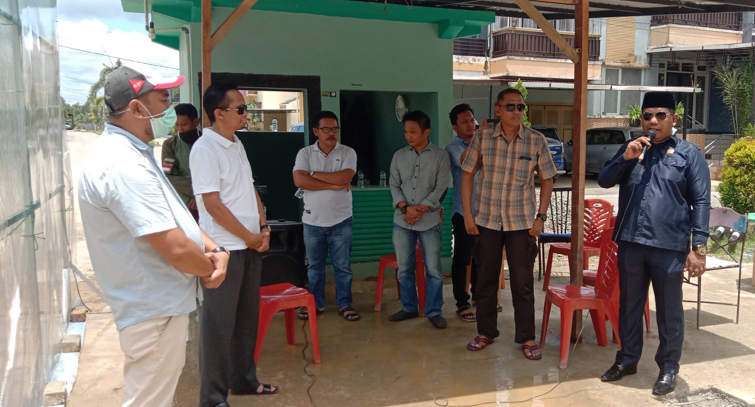 Tampak hadir Ketua DPRD Kota, Kendari Subhan ST didampingi Ketua Pengelola Kompleks Residence Palm Mas Kendari AKBP Darmono secara resmi melaunching bilik desinfektan covid-19, Kamis (26/3/2020).
