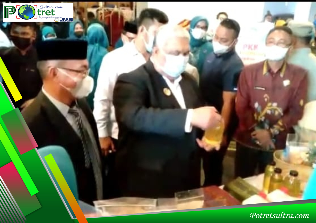 Peringatan HKG PKK yang digelar di Kota Kendari ini menjadi peluang bagi Tim Penggerak PKK Konkep untuk mempromosikan minyak goreng khas kelapa Wawonii. Minyak goreng ini merupakan hasil olahan para ‘emak-emak’ binaan PKK Konkep di sejumlah desa.