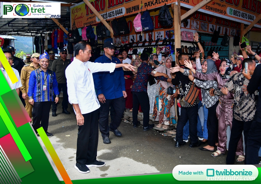 Di Kolaka Utara, Presiden Jokowi mengunjungi pasar Sentral Lacaria untuk mengecek stabilitas harga pasar.