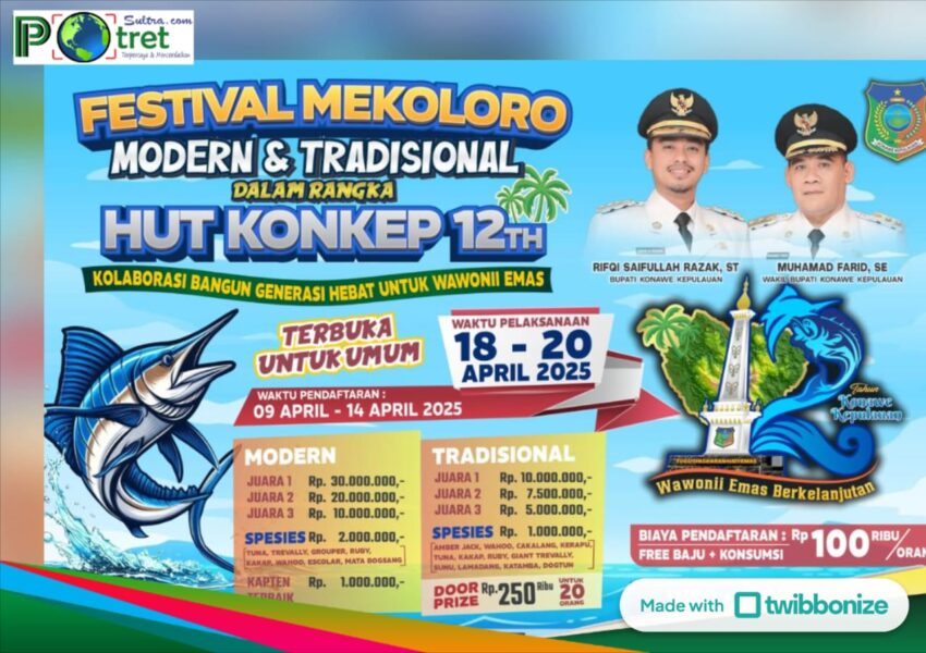 KONAWE KEPULAUAN – Pemerintah Kabupaten (Pemkab) Konawe Kepulauan (Konkep) menggelar Festival Mancing Mania yang bernama ‘Festival Mekoloro’ tahun 2025.