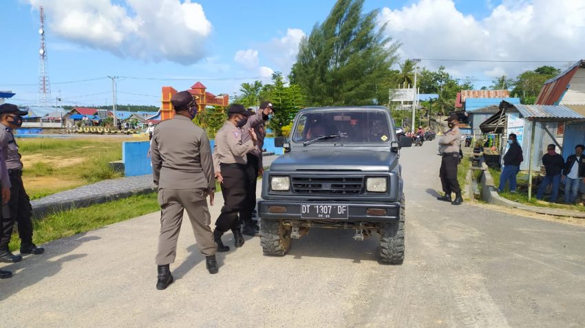 KONAWE KEPULAUAN – Jajaran personil Polres Kendari berjaga di pelataran TPI Langara, Kabupaten Konawe Kepulauan (Konkep).