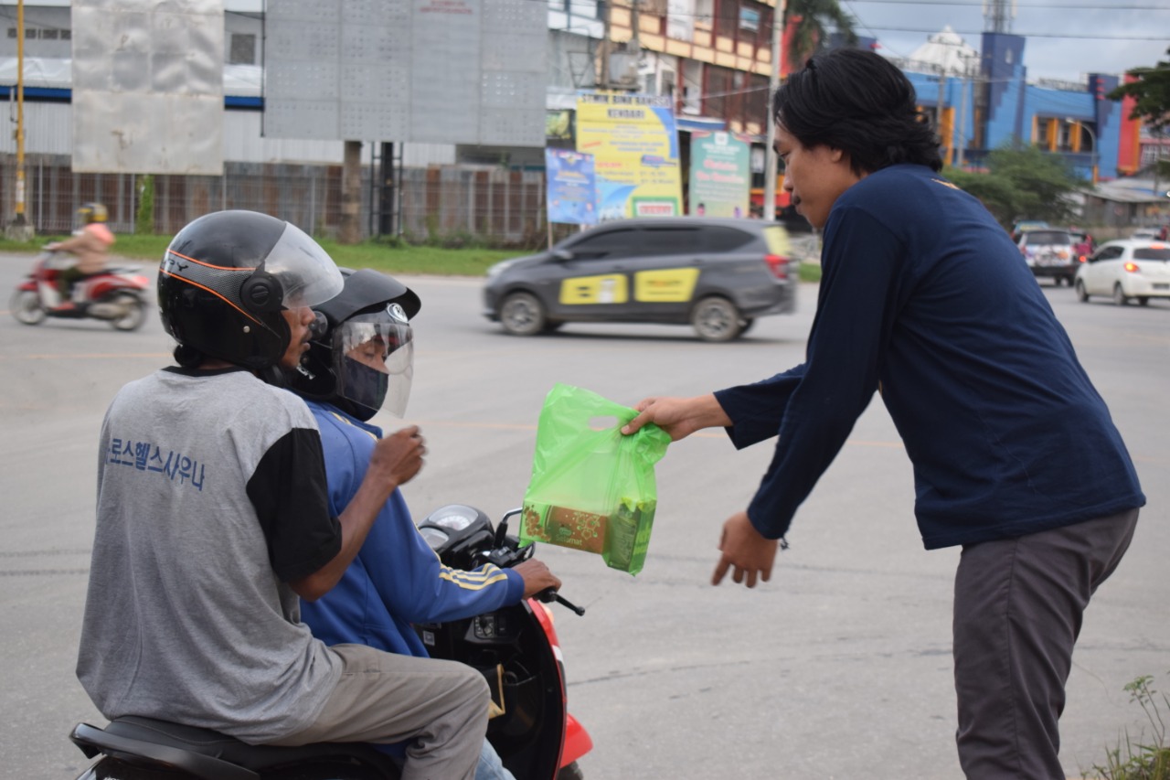 Harits menambahkan, pembagian takjil jelang waktu berbuka puasa diberikan kepada ratusan pengendara yang lalu lalang di dua titik lokasi tersebut.