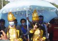 “Pakaian ini didesain oleh desainer asal Sulawesi Tenggara yang telah mendunia, Kusminto Herman Prasetyo, dengan memberdayakan dan membuka lapangan kerja kepada pengrajin tenun binaan Dekranasda Sulawesi Tenggara,” jelasnya.