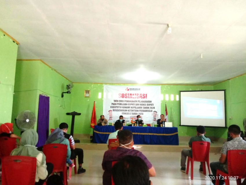 KONAWE KEPULAUAN – Pemilihan Kepala daerah (Pilkada) terhitung tinggal 16 hari lagi, Bawaslu Kabupaten Konawe Kepulauan (Konkep) makin gencar bersosialisasi terkait penanganan pelanggaran pemilihan.