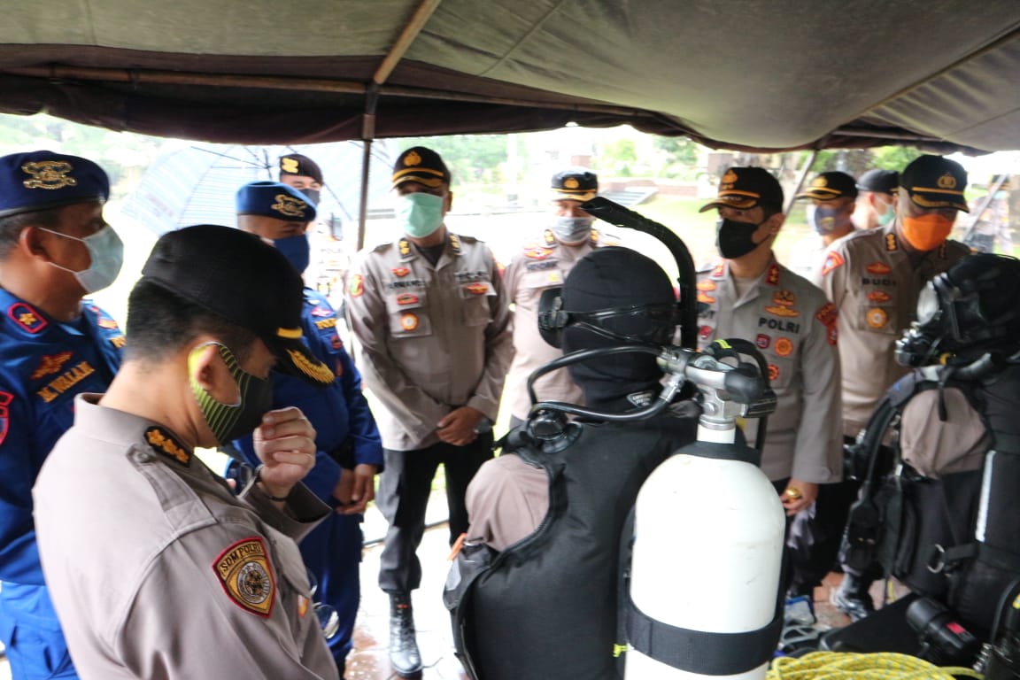 Dalam kesempatan ini Kapolda turut mendengarkan penjelasan dari personel yang bertindak sebagai operator perlengkapan dan peralatan siap siaga tersebut.