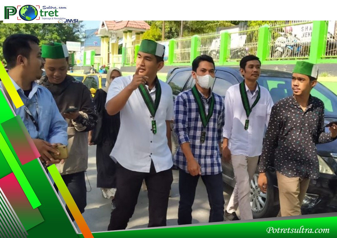 Keterangan Gambar : Formatur HMI Cabang Kendari, Muh FadriLaulewulu Bersama Massa Aksi (Foto: IST)