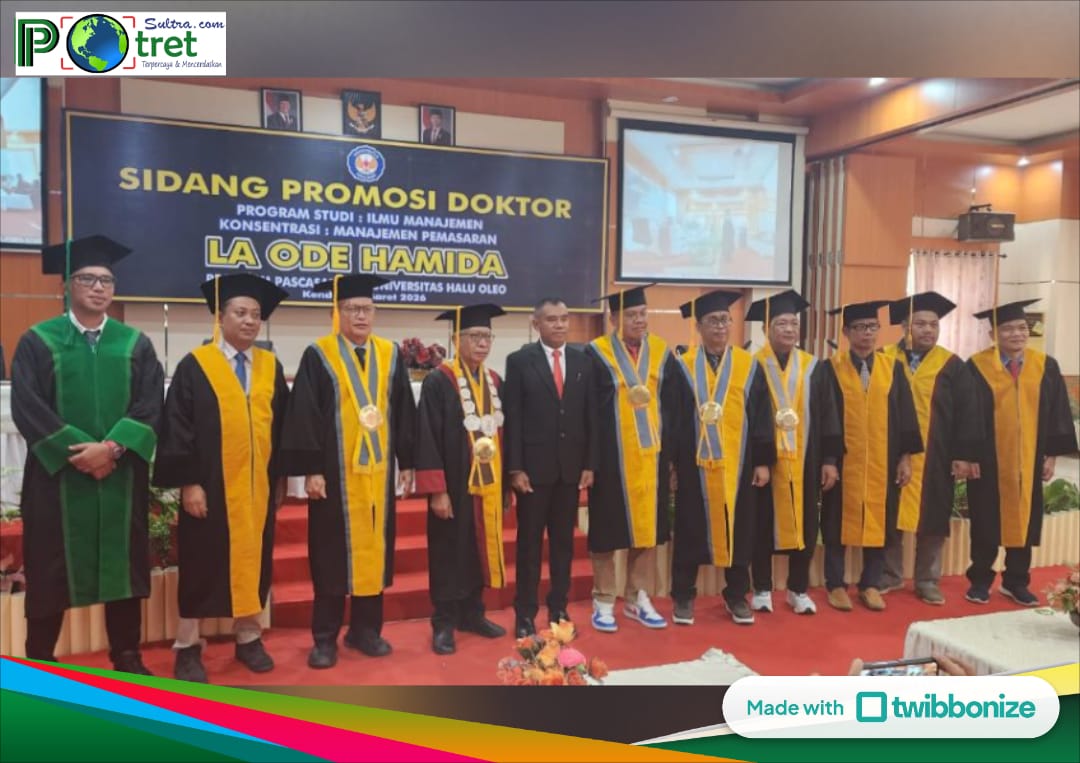 Keberhasilan ujian promosi doktor ini tidak hanya menjadi capaian akademik penting bagi La Ode Hamida, tetapi juga diharapkan memberi kontribusi nyata bagi pengembangan ilmu manajemen pemasaran dan penguatan daya saing usaha kecil dan menengah di Kota Kendari.