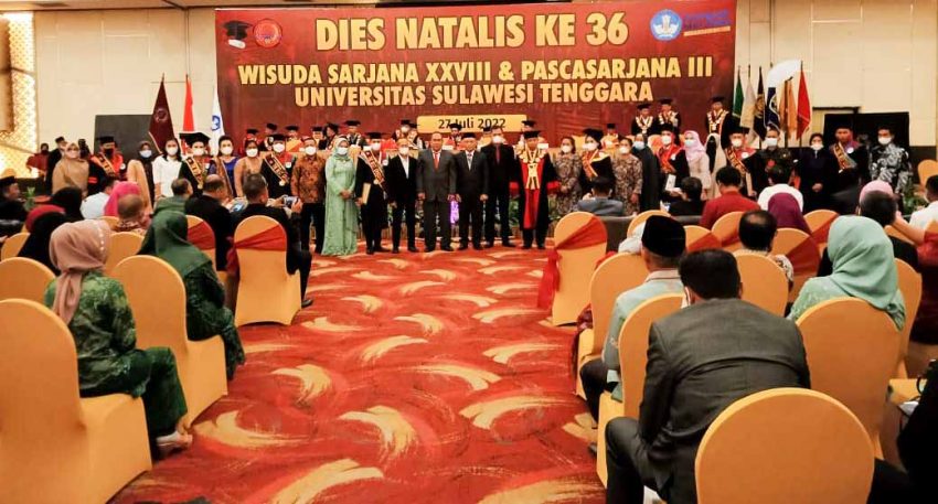 KENDARI – Universitas Sulawesi Tenggara (Unsultra) menggelar wisuda sarja XXVIII dan Pascasarjana III dirangkaikan dengan Dies Natalis Unsultra ke-36, Rabu (27/7/2022).