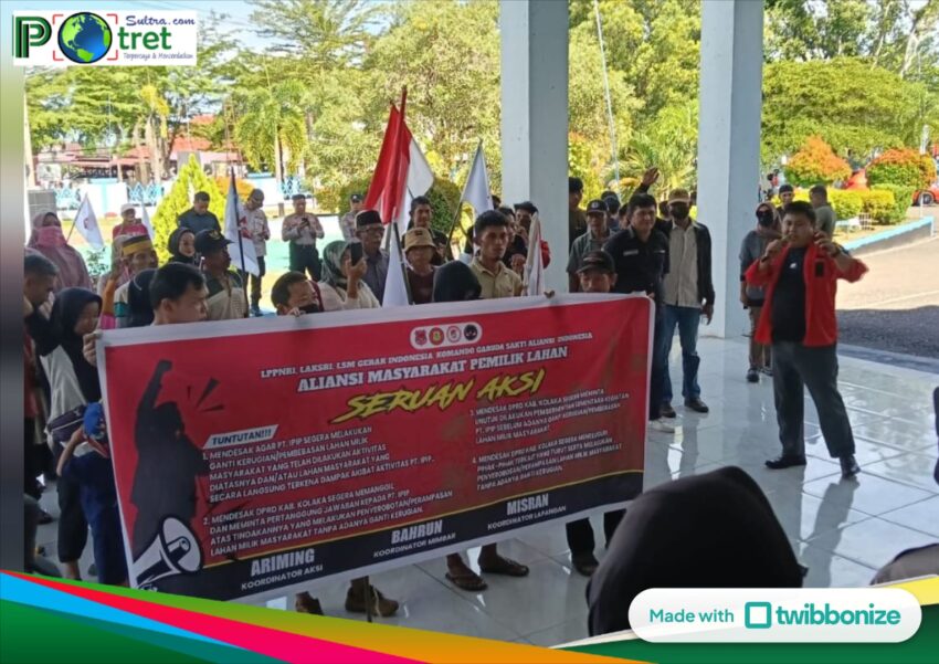 Aksi ini merupakan bentuk protes terhadap aktivitas PT Indonesia Pomalaa Industry Park (IPIP) yang dituding merampas lahan warga tanpa ganti rugi.